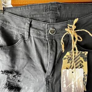 Hart Denim The Bandit Destroyed BF Cuff Distressed Black Jeans Size 25