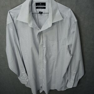 Hart Scaffner & Marx men's long sleeve button front 100% pima cotton white/purple shirt. Sz 17.5/35. Pit-p 24". Length 35". 176pm