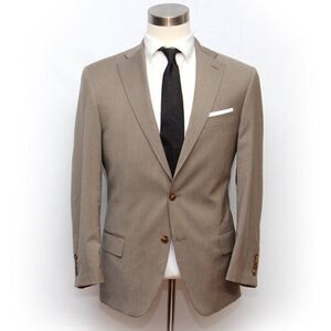 Hart Schaffner Marx 41R Sport Coat Blazer Jacket Tan Solid 2B Wool D060390