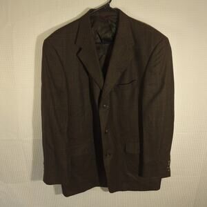 Hart Schaffner Marx 42R Wool Sport Coat Blazer Men Brown Plaid Check USA Made