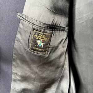 Hart Schaffner & Marx 44L 100% Wool Blazer Gold Buttons Jacket Long Navy Blue