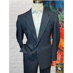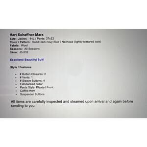 Hart Schaffner Marx 44L 37x32 Solid Navy Blue Nailhead Quality 2 Piece Suit