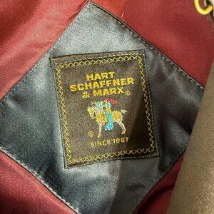 The Hart Schaffner Marx Belted Trench Coat in men's size 44R is a stylish and versatile outerwear option in a classic gray color. Made from a durable blend of polyester and cotton with a canvas fabric type, this coat features a removable wool lining for added warmth and versatility. The trench coat style with a button closure and spread collar makes it suitable for various occasions from casual to formal, with features such as being packable, moisture-wicking, and water-resistant. Perfect for the fashion-conscious man looking for a quality, timeless piece to add to his collection.