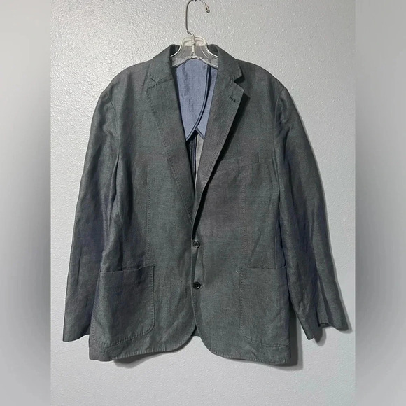Hart Schaffner Marx Blazer Suit Jacket Sport Coat Linen Blend Blue EUC 44