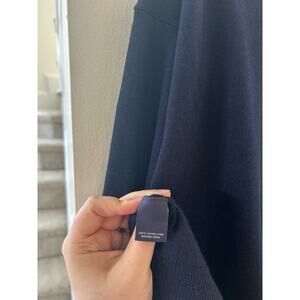 Excellent condition. V-neck, long sleeves, ribbed hems. Extra fine merino wool. Beautiful navy color.