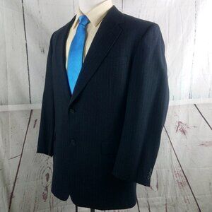 Hart Schaffner Marx Dillards 44L Wool Comfort Plus Blue Striped 2pc Suit