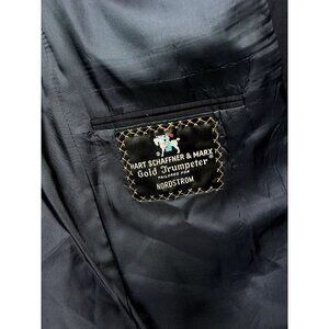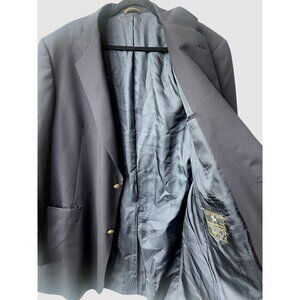Hart Schaffner & Marx Gold Trumpeter Wool 46L Navy Blue Gold Button Suit Blazer