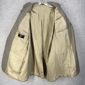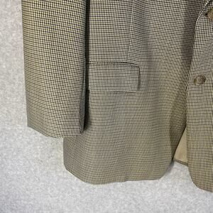 🤎 Hart Schaffner Marx Mens 46R Wool Blazer Tan Navy Check 🤎