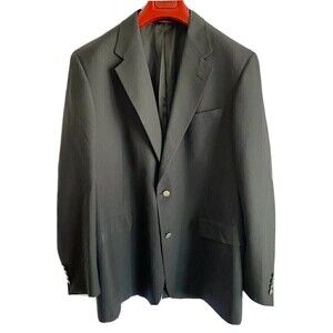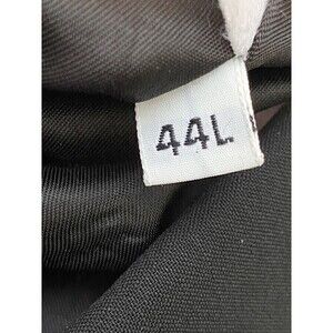 The lining, pockets, and buttons are all in good, wearable condition. It is black, made in the USA, and the size is a 44 LONG.