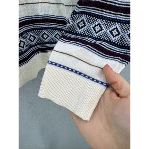 Hart Schaffner Marx Mens Cream Blue Fair Isle Merino Wool Pullover Sweater Large