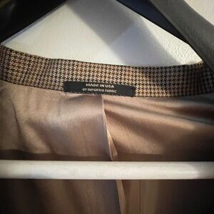 Elevate your style with this classic tan houndstooth suit coat. Perfect for any occasion, it offers a sophisticated look.