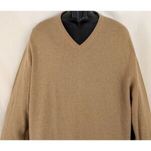 Hart Schaffner Marx Mens XL Camel 100% Cashmere V-Neck Sweater