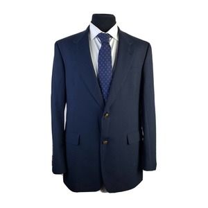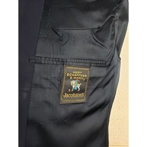 Hart Schaffner Marx Navy Blue 2 Gold Buttons Wool Blazer Mens 43LSize was hand measured. Button on left cuff was removed, but is still inside the inner pocket. There is a small 1/8 in tear on back of right shoulder. Please check measurements to ensure a proper fit.