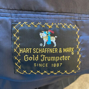Upgrade your wardrobe with this Hart Schaffner Marx pinstripe wool sport coat dinner jacket blazer. The classic black color and striped pattern make it suitable for any occasion, whether it's a formal event, business meeting, or casual outing. The jacket features a notch lapel style, four-button sleeve button style, and single-vented jacket vent style. This designer blazer is made with high-quality tweed fabric and includes inner pockets and stretch for added comfort. It's perfect for the winter, summer, fall, or spring season and available in size 44L. Dry clean only. Get ready to turn heads with this stylish and preppy blazer that embodies a classic yet colorful look.