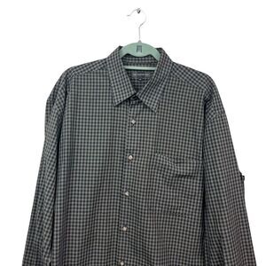Hart Schaffner Marx Plaid Shirt Button Up Long Sleeve Gray Black Men Size XL