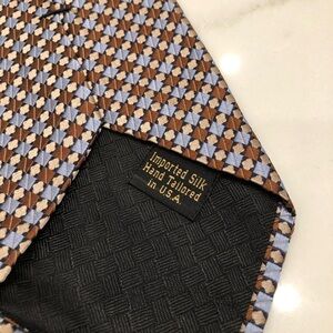 Hart Schaffner Marx Silk Blue and Brown Geometric Tie