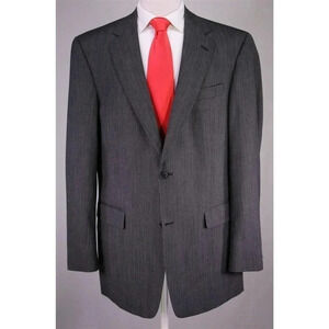 Hart Schaffner Marx Travelor Gray/Black Striped 2-Btn Luxury Wool Suit 42L