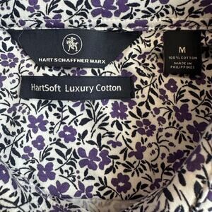 Hart Schaffner Marx White/Purple Floral, Short Sleeve Button Down Shirt- M