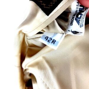 Excellent Pre-Owned Condition meticulously looked over no visible tears, stains, or smells. Measurements are taken with garment laid flat. All of our menswear have a universal Classic Measurement, that is why there can be a difference between tagged and titled measurement. Regardless of what the tag might say to get the sizing of the jacket I doubled the measured pit to pit portion and subtracted 4 inches (traditional measurement)and rounded up to the nearest even number. For length I measured the back of the jacket short is under 30 inches regular is 30 - 32 inches and long is anything over 32 inches. Please see measurements in description and compare to your size.