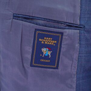 Hart Schaffner Marx Wool Blue Plaid W/ Purple Windowpane Blazer / Sport Coat 42R 2 Button