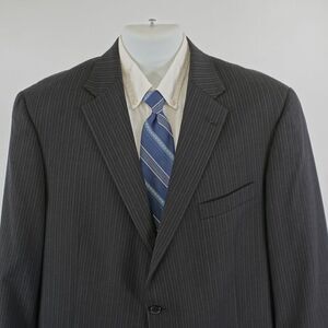 Hart Schaffner Marx Black Striped Wool 2 Button Suit Jacket 46R Tagged 48R