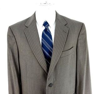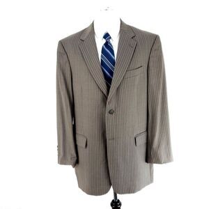 Hart Schaffner Marx Gold Trumpeter Wool 2 Button Suit Jacket 42L Brown Striped