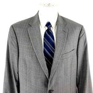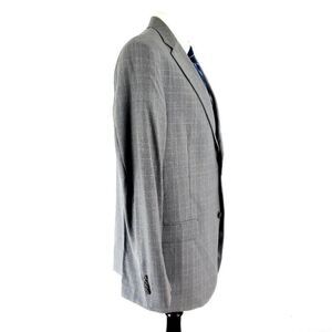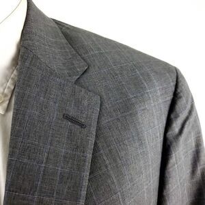 Hart Schaffner Marx Guabello Super 130s Wool 2 Button Blazer 42R Gray Plaid Blue