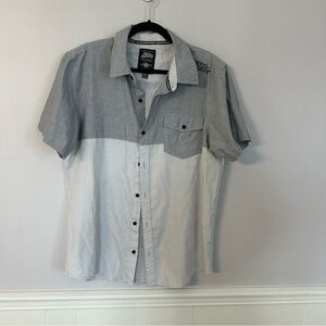 Hart and Huntington Men’s Short Sleeve Colorblock Button Up Shirt Sz XL GUC Great used condition Size: XL Color: Gray & White Short Sleeve Button up Front chest buttoned pocket Logo on front shoulder & back design Cotton blend Flat Lay: Armpit to Armpit: 22.5” Shoulder to Bottom: 30” All measurements are approximate 20