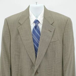 Hart Schaffner Marx Green Tan Nailshead Wool Sport Coat 2 Button 42L
