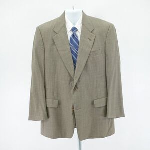 Excellent Pre-Owned Condition  meticulously looked over no visible tears, stains, or smells. Measurements are taken with garment laid flat. All of our menswear have a universal Classic Measurement, that is why there can be a difference between tagged and titled measurement.  Regardless of what the tag might say to get the sizing of the jacket I doubled the measured pit to pit portion and subtracted 4 inches (traditional measurement)and rounded up to the nearest even number.  For length I measured the back of the jacket short is under 30 inches regular is 30 - 32 inches and long is anything over 32 inches.  Please see measurements in description and compare to your size.