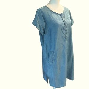 Hartford Chambray Short Sleeve Dress Button Down Neckline w/Pockets Size 4