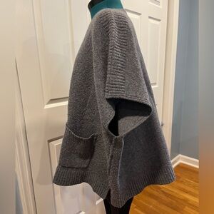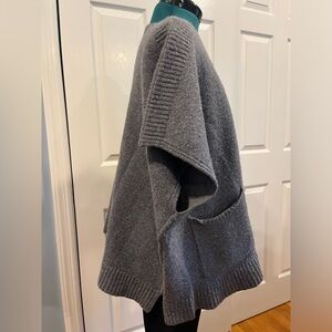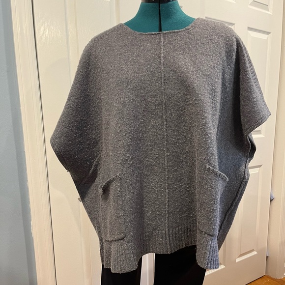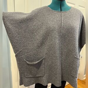 Hartford grey ruana, pockets, boxy, wool, warm cover-up on a chilly day. French sizing applies. Size 2=medium.