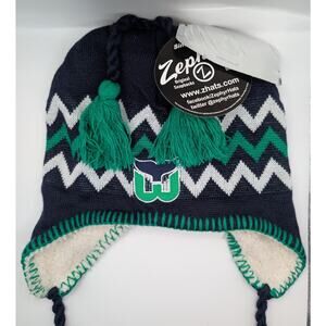 Stay warm and rep a legendary hockey team with this Hartford Whalers knit winter hat by Zephyr.