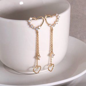 Harti Heart Olive Earrings - 14k Gold Plated Dainty Heart Drop Earrings