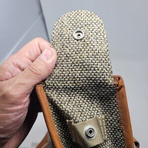 Nylon and polyester blend tweed, American vegetable tanned leather