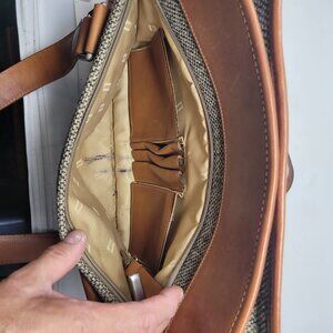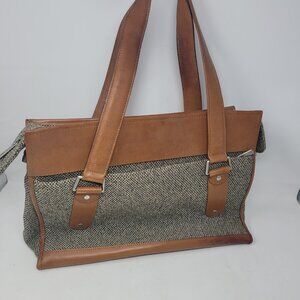 Hartmann Grey Tweed Leather Trim Shoulder Classic Business Bag 13x17x7 Briefcase