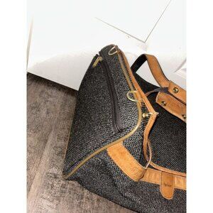 Hartmann Vintage Brown Tweed Leather Carry On Weekender Overnight Duffle Bag