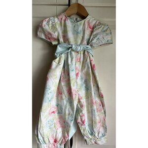Hartstrings Baby Floral Romper Girls 12 Month Pink Green Cotton Easter Spring