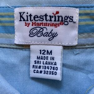 Hartstrings Kitestrings Baby Blue Christmas Buttondown Bodysuit 12 Months Tie