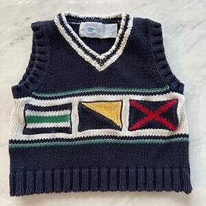 Hartstrings baby 24 months boys sweater vest blue flags pattern vintage v-neck