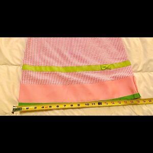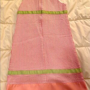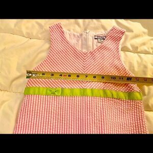 Hartstrings Pink Seersucker Little Girls Shift Dress Green Ribbon Accent, Sz 8