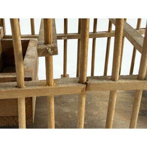 Pre-owned in good to fair overall condition with signs of wear, scuffs, and aged wood. Features original Hartz Mountain Bird Foods graphic signage. Decal shows vintage distress & fading. There is a brack in the wood frame on the cage see photo