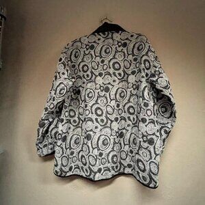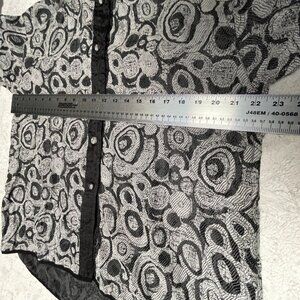 Harubella Hand Made Textured Crinkle Jacket Button Front Gray Black Women Medium
