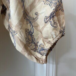 Harvé Benard Beige Boho Floral Blouse with 3/4 Sleeves, Size M