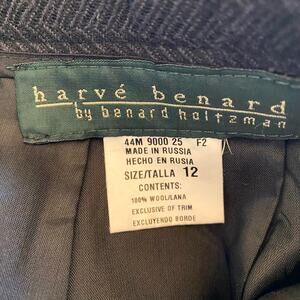 Harvé Benard Black Wool Herringbone Pencil Skirt 12