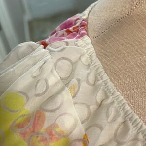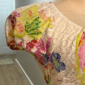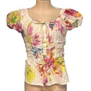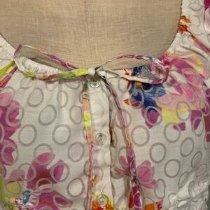 Harvé Benard Romantic White with Colorful Flower Pattern Buttoned Down Blouse