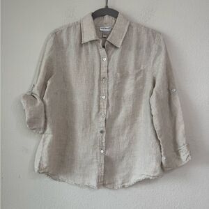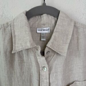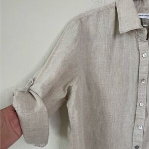 Harvé Benard 100% Linen Roll-Tab Sleeve Button-Up Shirt Beige Size L
