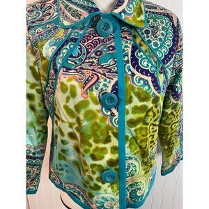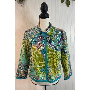 Harvé Benard Womens Paisley Print Jacket Size 8 Cotton Blend Green & Teal