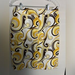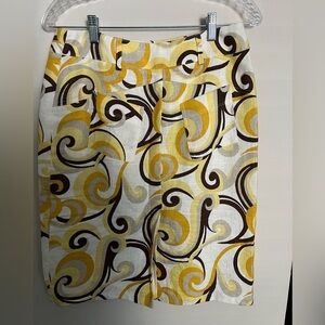 Harvé Benard Women’s Petite Linen Skirt, Yellow/Brown Geometric Pattern; Size 6P