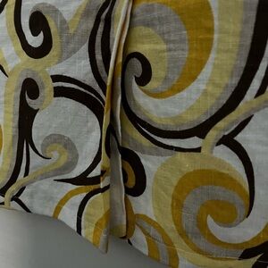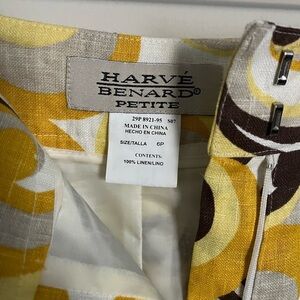 Harvé Benard Women’s Petite 100% Linen Skirt Yellow/Brown Geometric Pattern, Lined, Back Pockets, Slit, Zippered Fly;